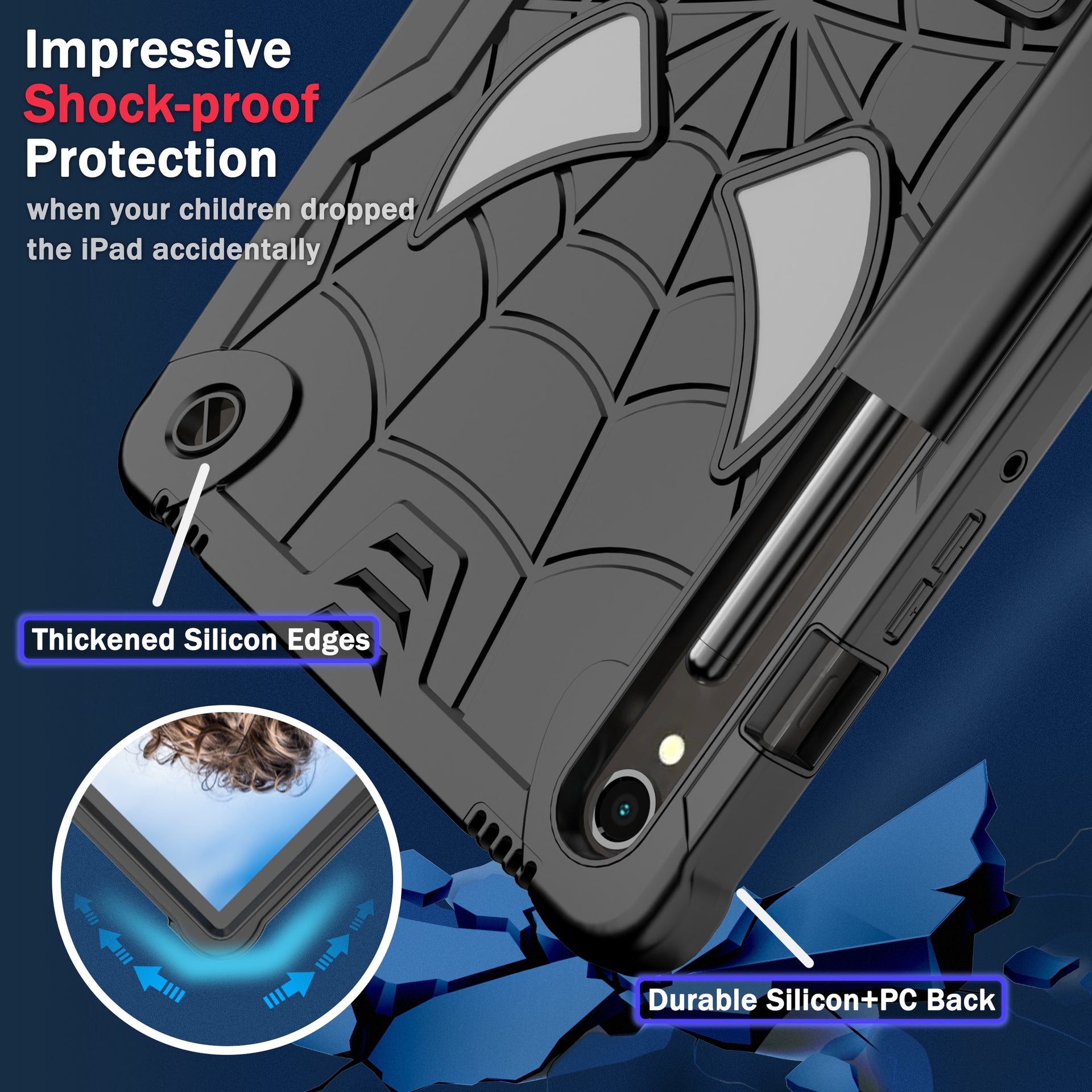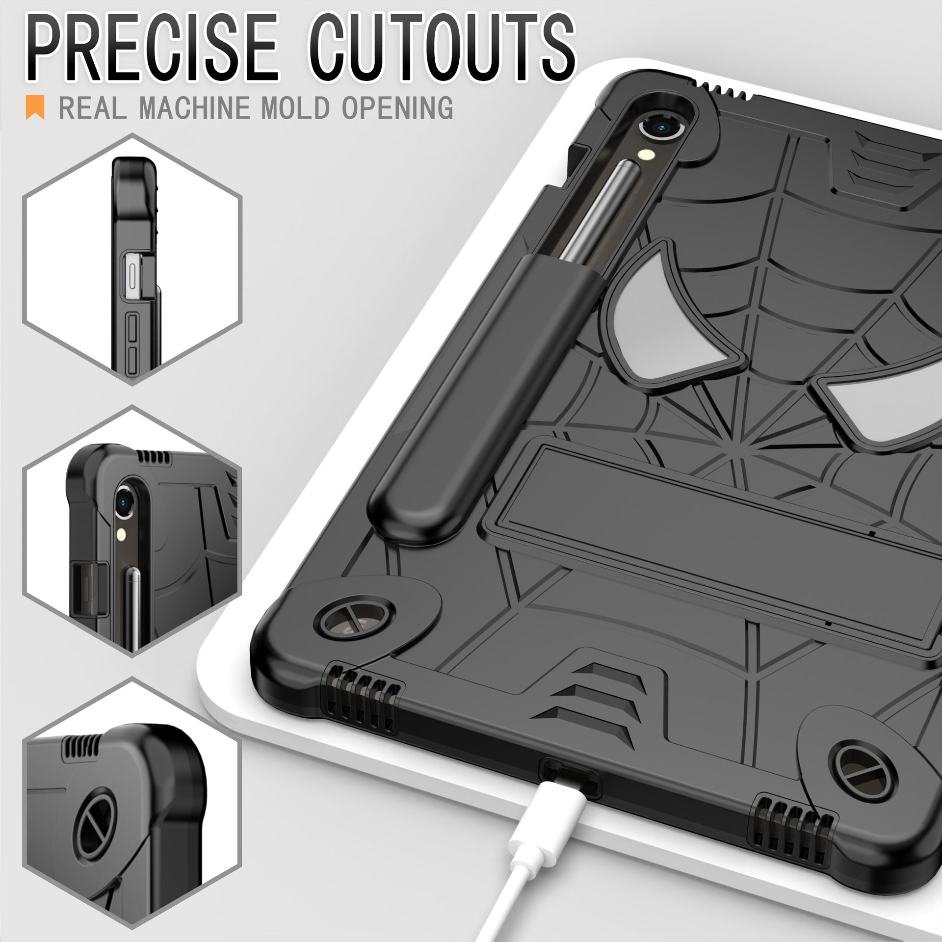 For Samsung Galaxy Tab S9 / Tab S9 FE Spider Web Tablet Case Kickstand Cover - Black+Black