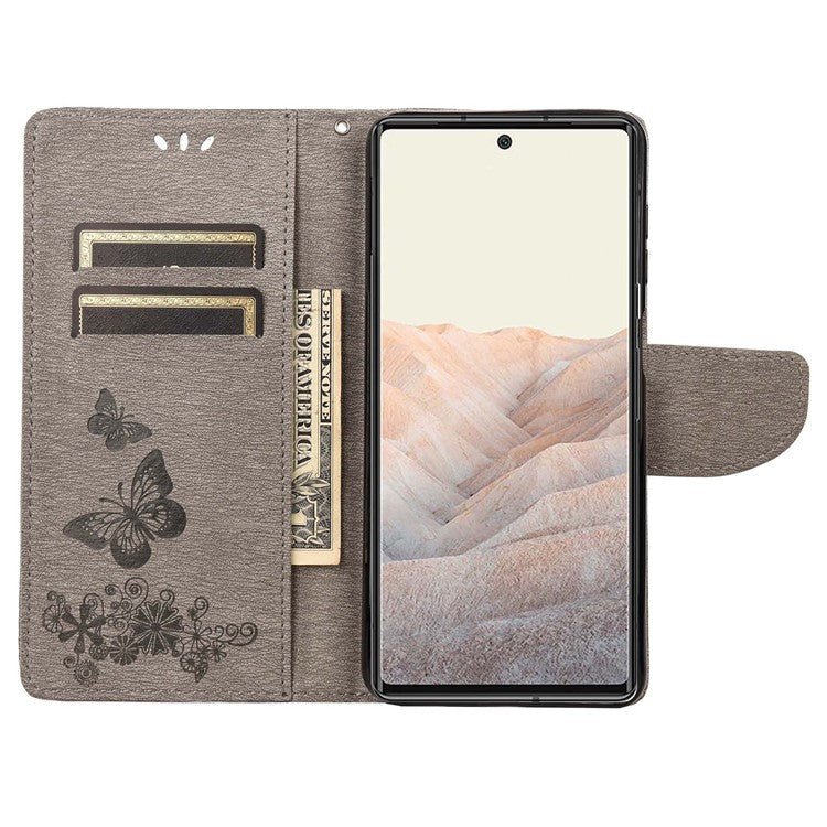 Anti-fingerprint Imprint Big Butterflies Leather Mobile Phone Case Stand Wallet Stand Covering for Google Pixel 6a - Grey