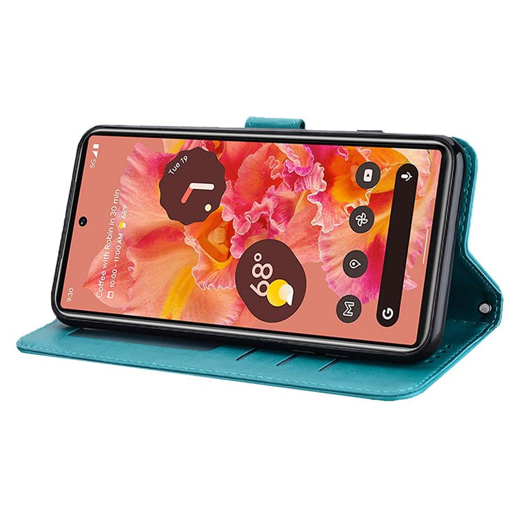 Anti-scratch Elk and Tree Pattern Imprinted Wallet Leather Phone Case Stand Shell for Google Pixel 6 Pro - Blue