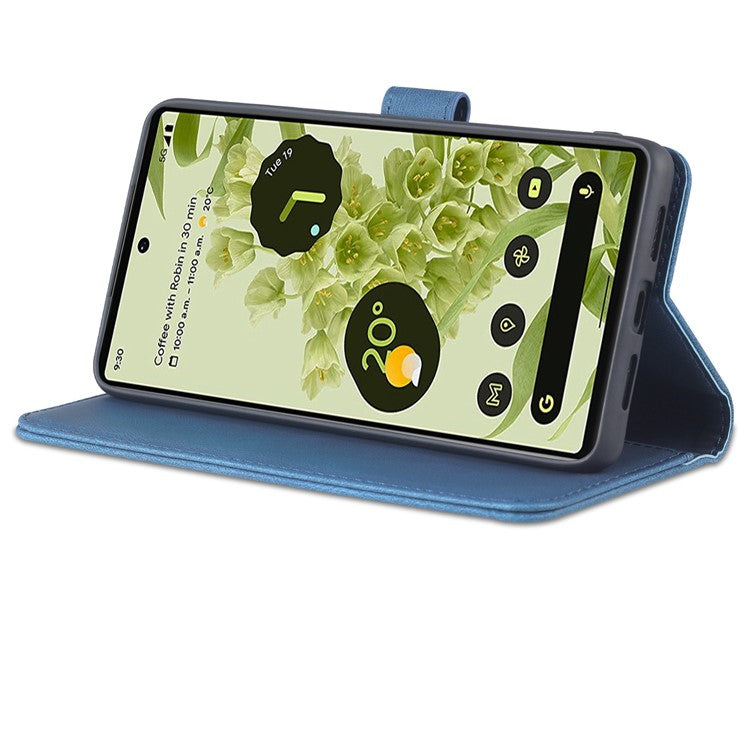 AZNS TPU+PU Leather Wallet Stand Phone Case Well-protected Flip Phone Shell for Google Pixel 6 Pro - Blue