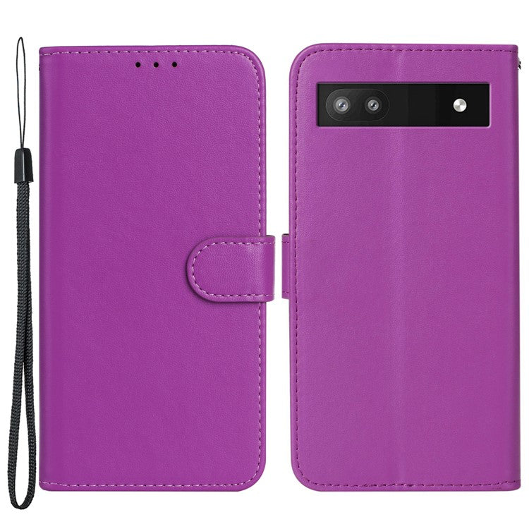 B40 For Google Pixel 6a Wallet Stand Phone Cover Anti-Dust PU Leather+TPU Cell Phone Case - Purple
