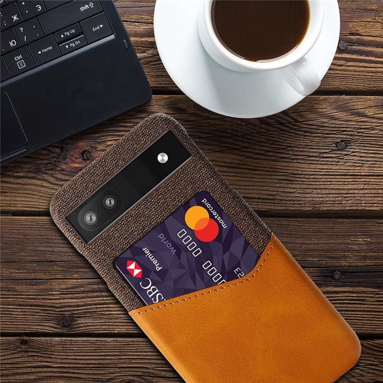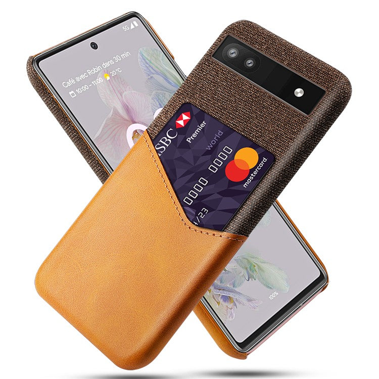 Card Holder Cloth + PU Leather + PC Mobile Phone Case Cover for Google Pixel 6a - Orange