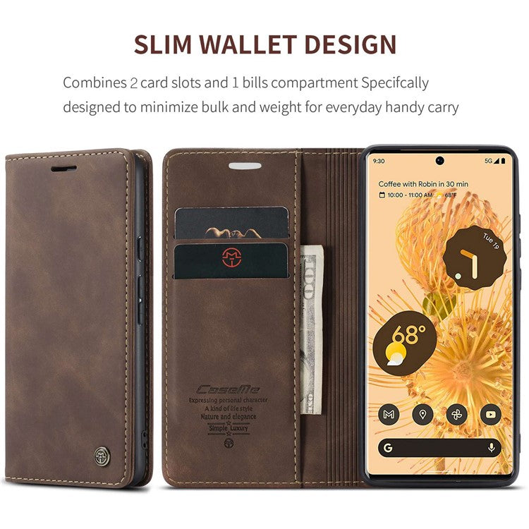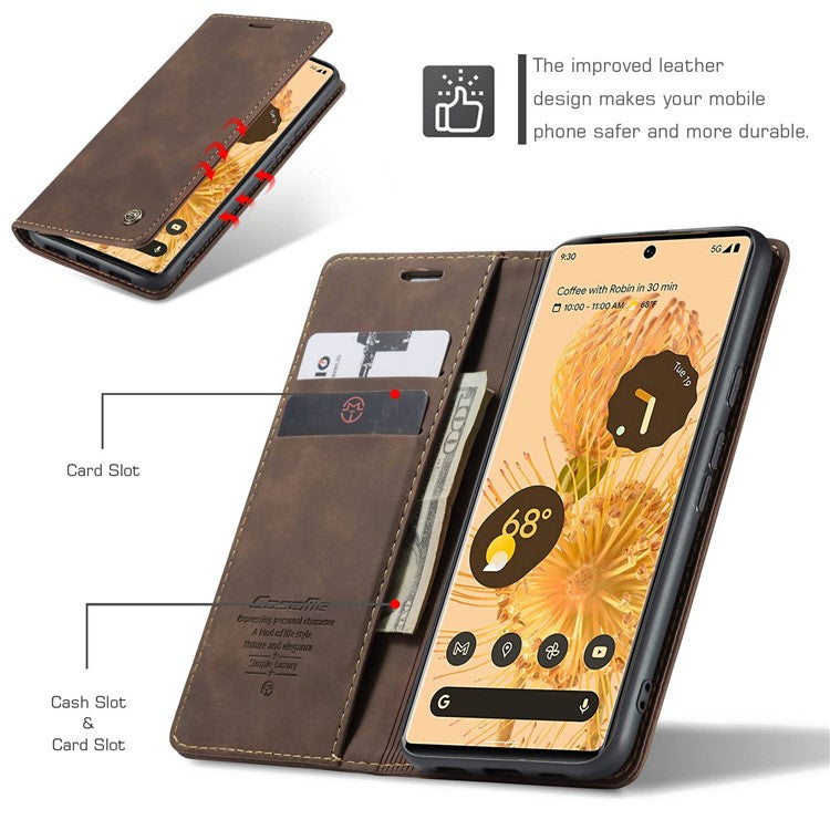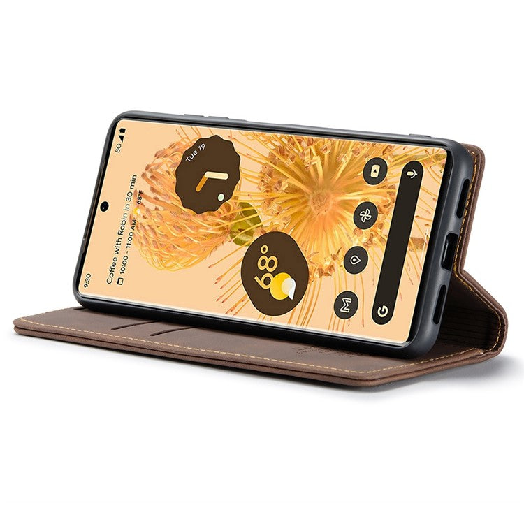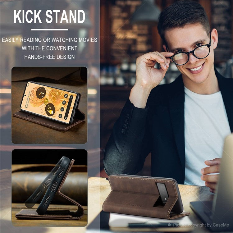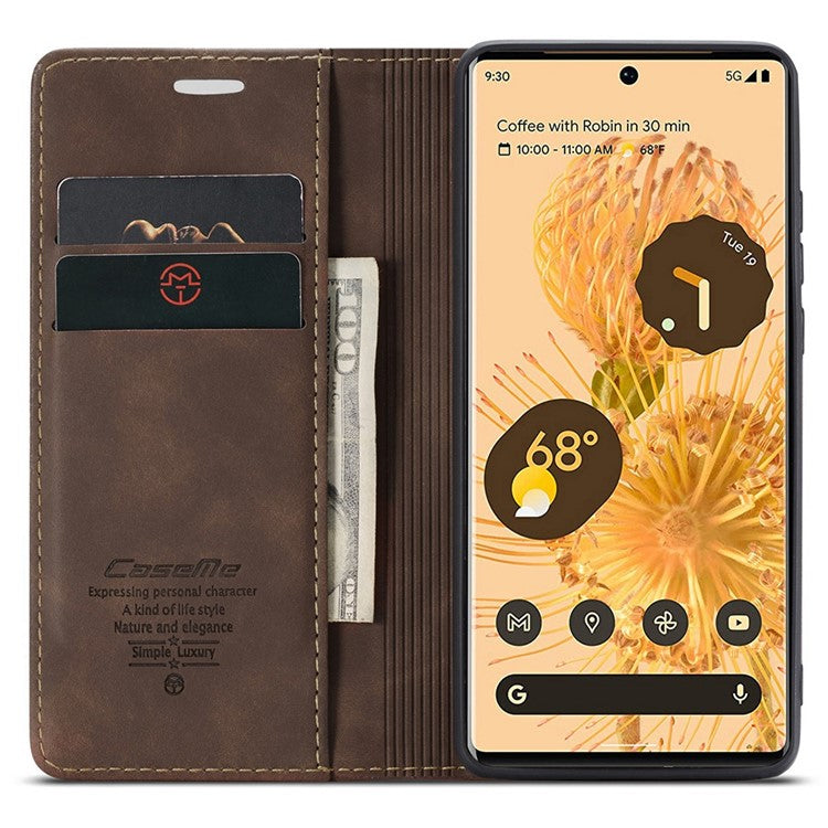 CASEME 013 Series Compatible for Google Pixel 6 Pro Mobile Phone Case Wallet Anti-Drop Magnetic Auto-absorbed PU Leather Flip Phone Cover - Coffee