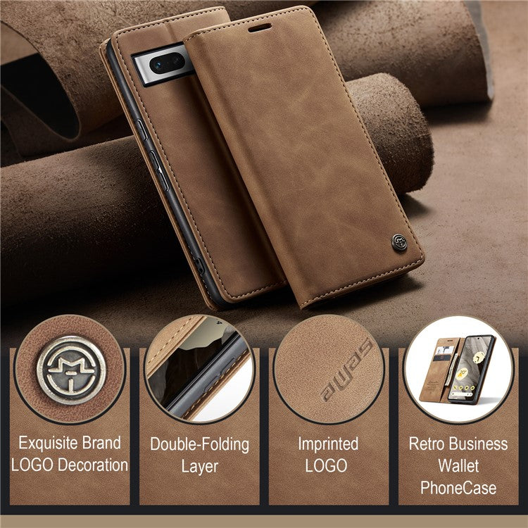 CASEME 013 Series For Google Pixel 7a Case Card Holder Stand Leather Phone Cover - Brown