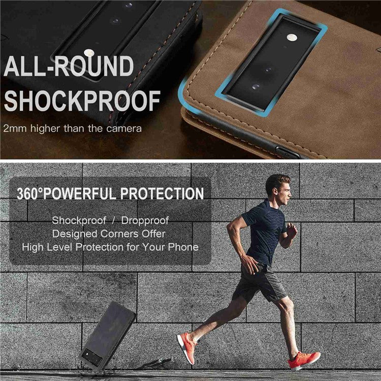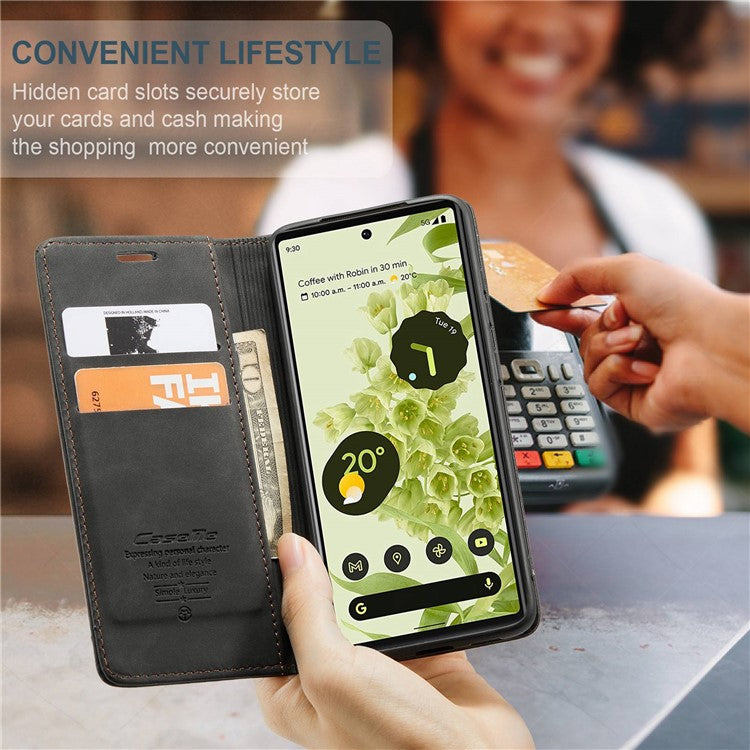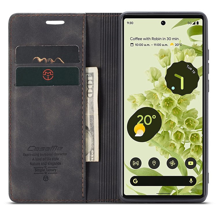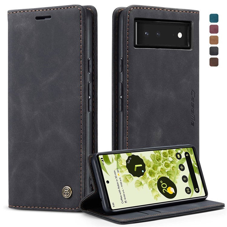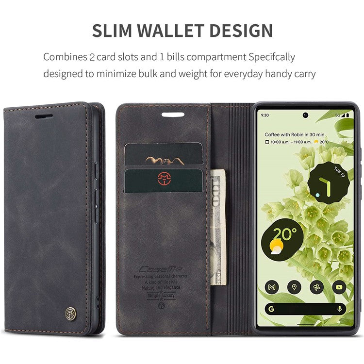 CASEME 013 Series Wallet Stand Design Lightweight Auto-absorbed PU Leather Flip Folio Phone Case for Google Pixel 6 - Black