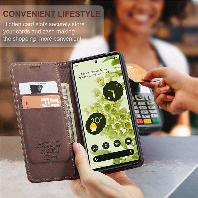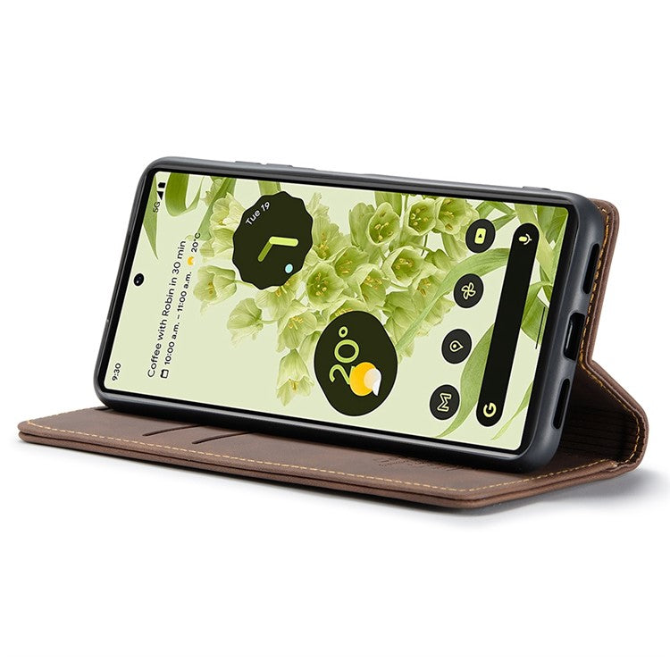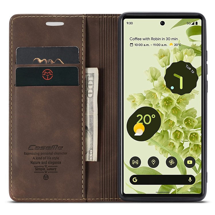 CASEME 013 Series Wallet Stand Design Lightweight Auto-absorbed PU Leather Flip Folio Phone Case for Google Pixel 6 - Coffee