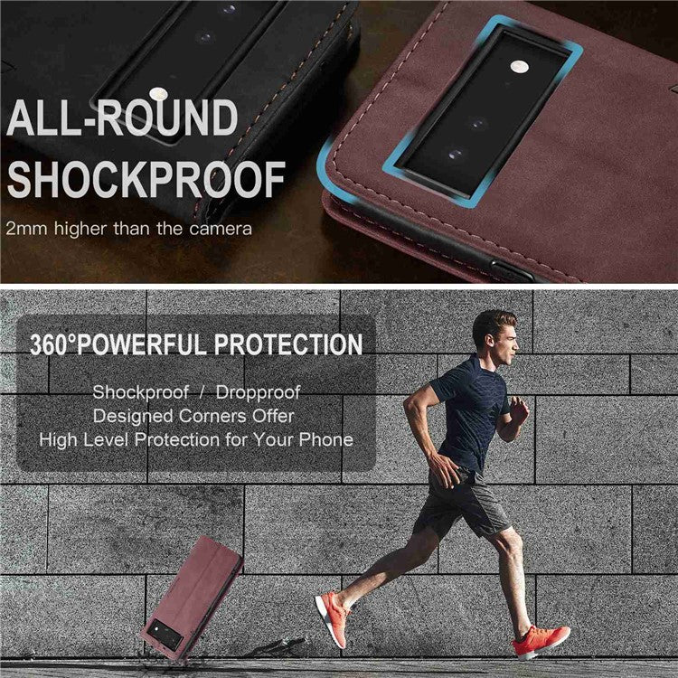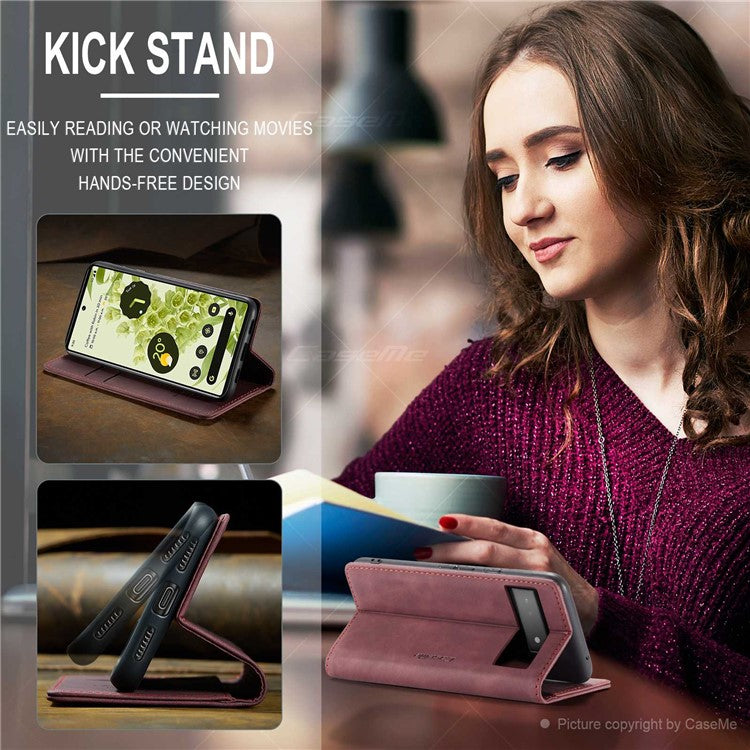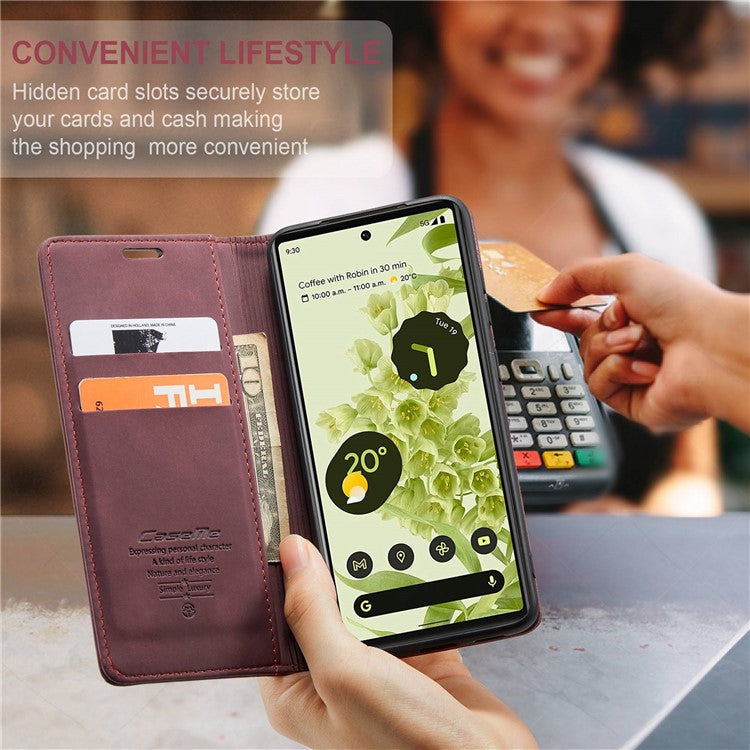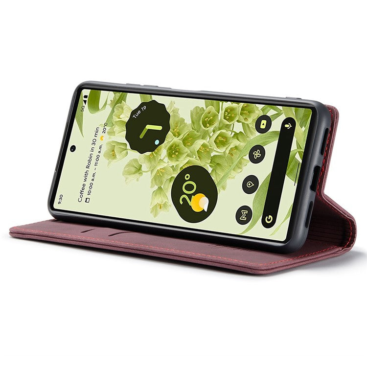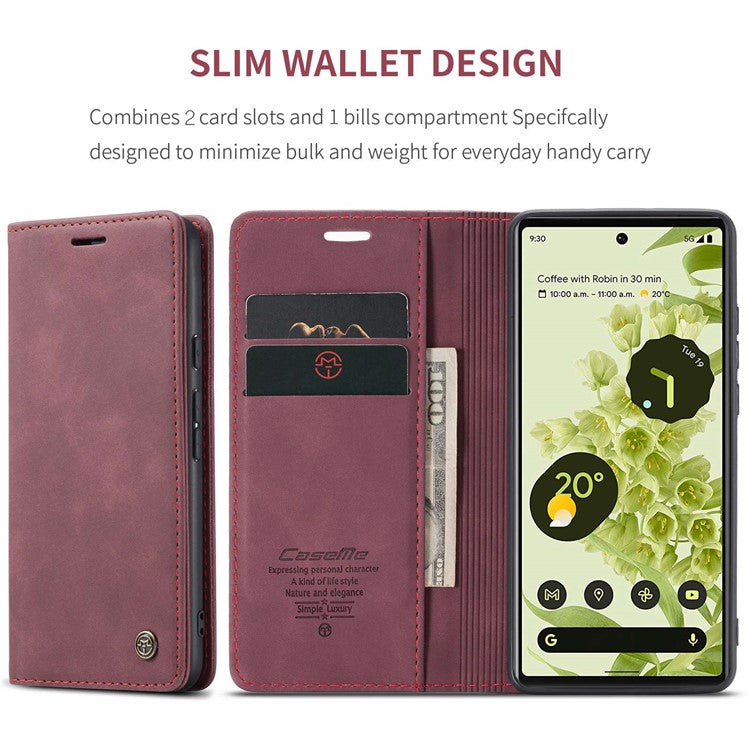 CASEME 013 Series Wallet Stand Design Lightweight Auto-absorbed PU Leather Flip Folio Phone Case for Google Pixel 6 - Red