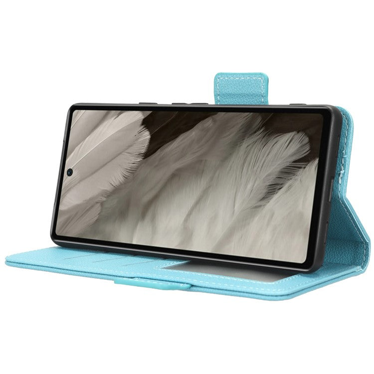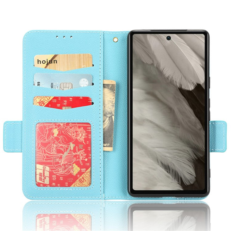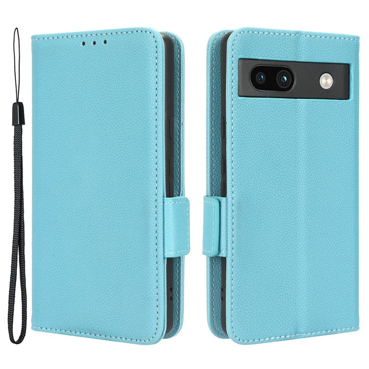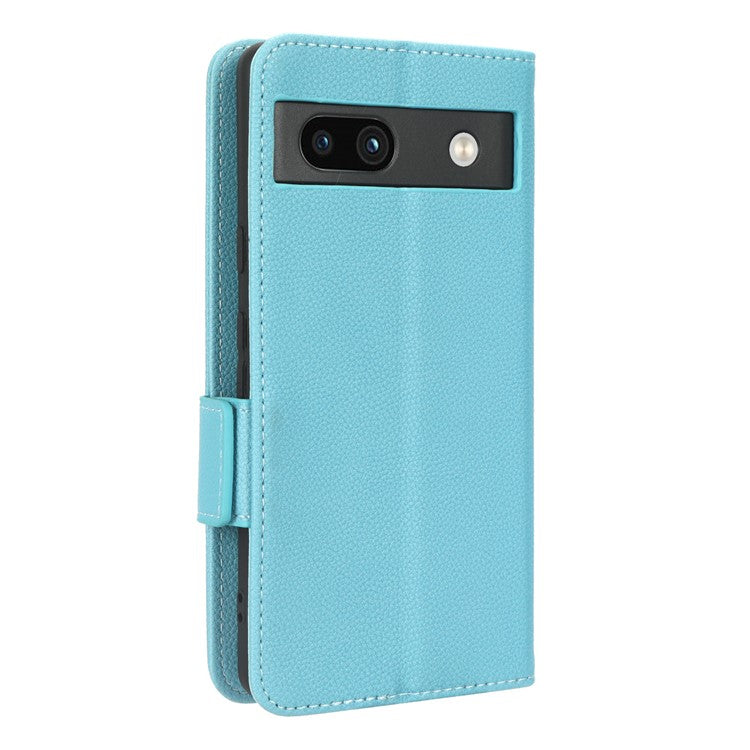 Cell Phone Cover For Google Pixel 7a , Wallet Stand Litchi Texture PU Leather Anti-fall Flip Phone Case - Baby Blue