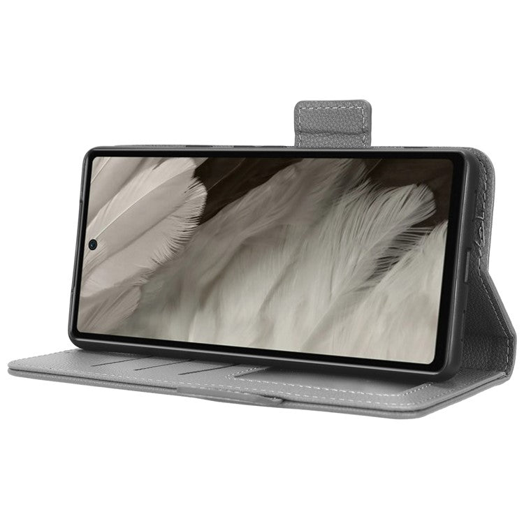 Cell Phone Cover For Google Pixel 7a , Wallet Stand Litchi Texture PU Leather Anti-fall Flip Phone Case - Grey