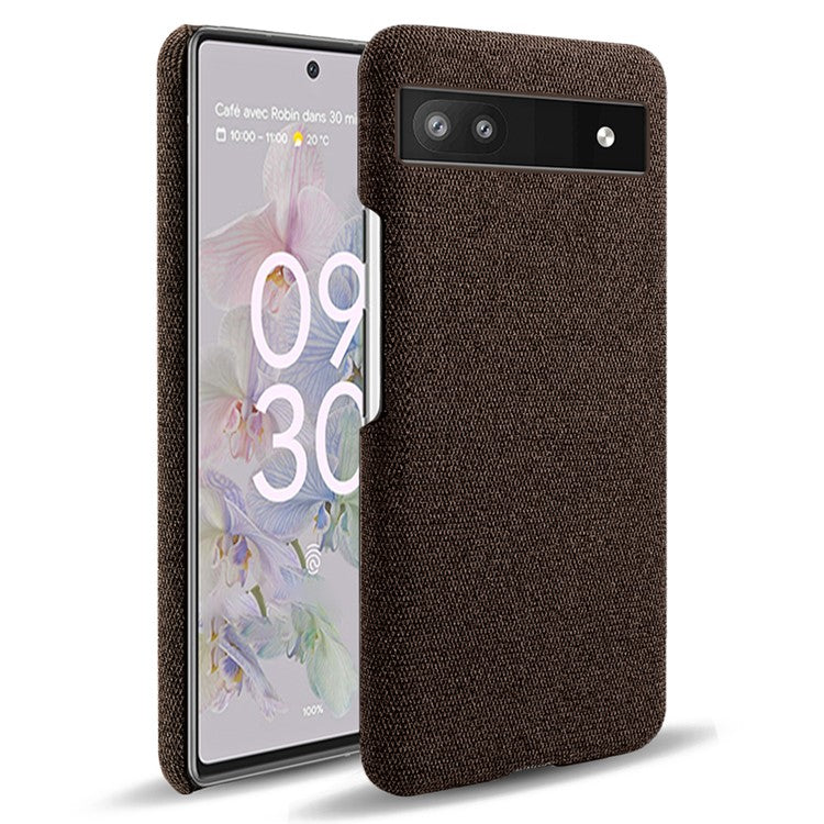 Cloth Texture Coating Shockproof Hard PC Phone Case Shell for Google Pixel 6a - Brown