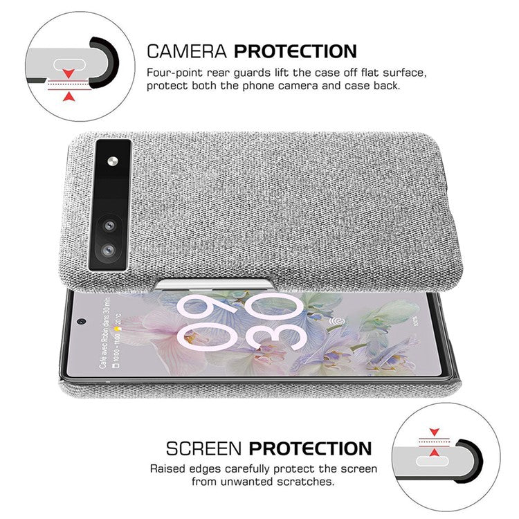 Cloth Texture Coating Shockproof Hard PC Phone Case Shell for Google Pixel 6a - Light Grey