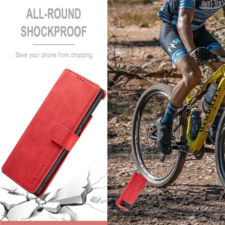 DG.MING Full Protection Retro Style PU Leather Cover Inner TPU Phone Case with Stand Wallet for Google Pixel 6 - Red