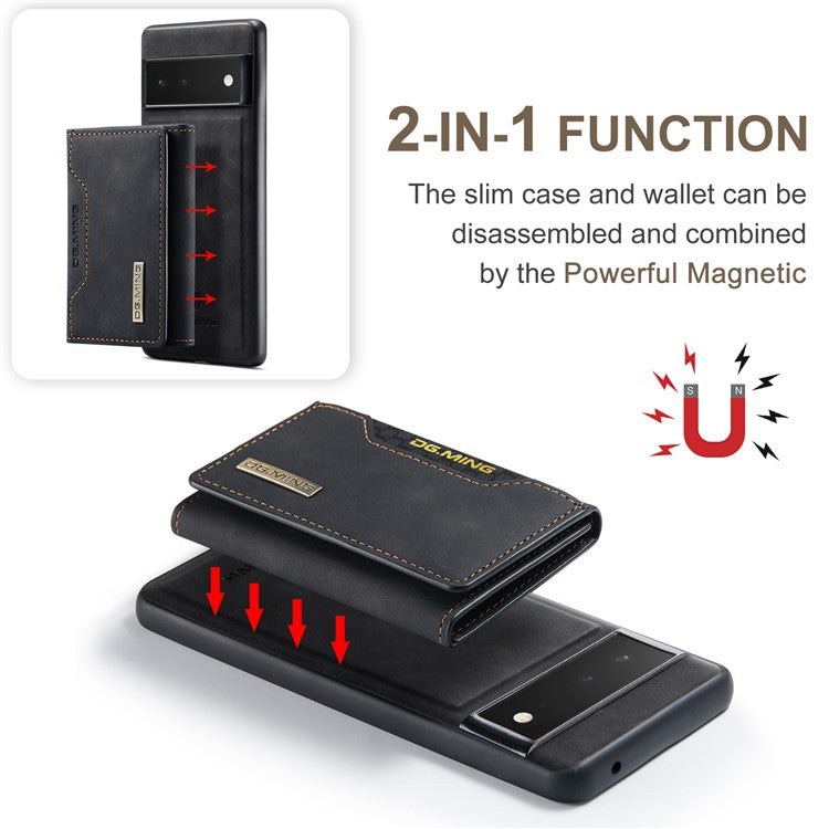 DG.MING M2 Series Shockproof Anti-scratch Magnetic Wallet Design Hybrid Case with Kickstand for Google Pixel 6 Pro - Black