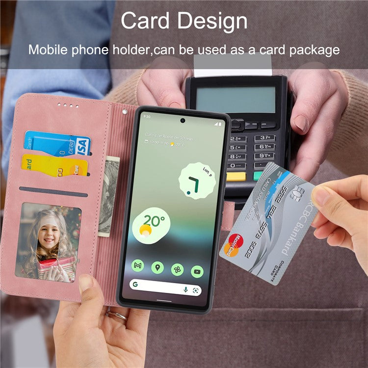 DIERFENG Anti-drop PU Leather Phone Case for Google Pixel 6a, DF-03 Lines Imprinted Scratch-resistant Phone Cover Stand Wallet - Pink