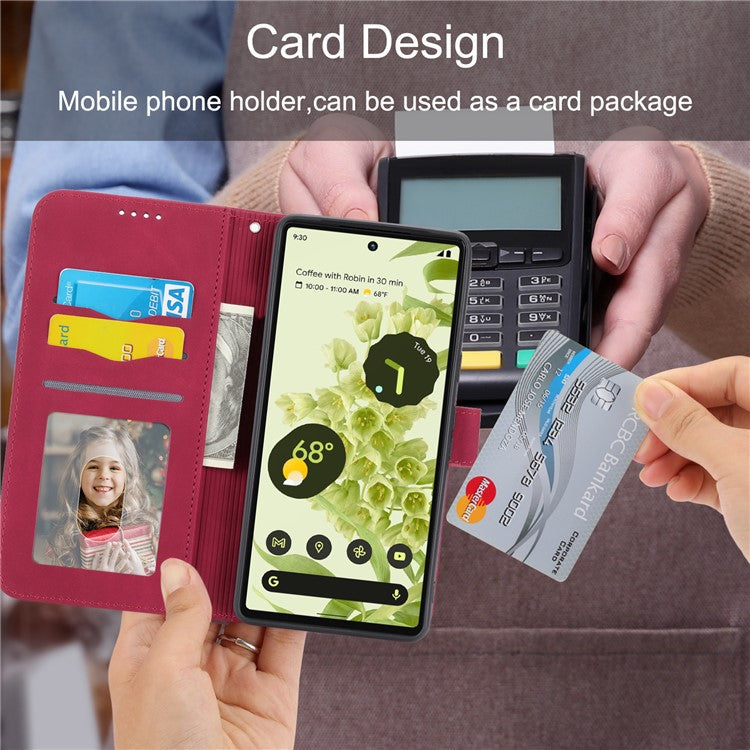 DIERFENG DF-03 Anti-scratch Leather Phone Case for Google Pixel 6, Lines Imprinted Anti-shock Flip Cell Phone Cover Stand Wallet - Red
