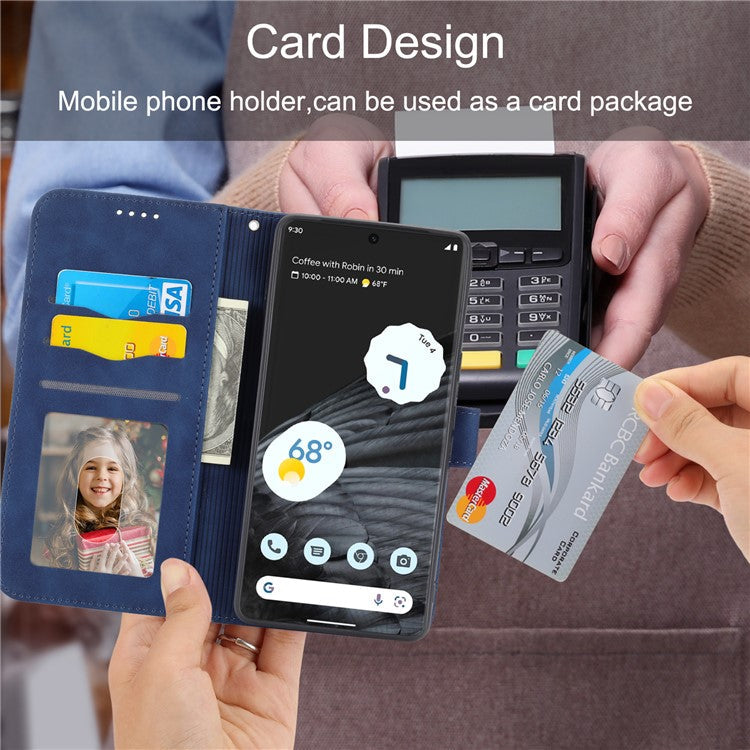 DIERFENG DF-03 Mobile Phone Leather Case for Google Pixel 7 Pro 5G, Lines Imprinted Phone Cover with Wallet Stand - Blue