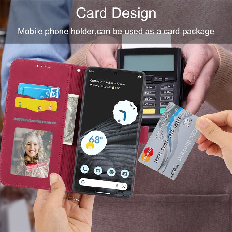 DIERFENG DF-03 Mobile Phone Leather Case for Google Pixel 7 Pro 5G, Lines Imprinted Phone Cover with Wallet Stand - Red