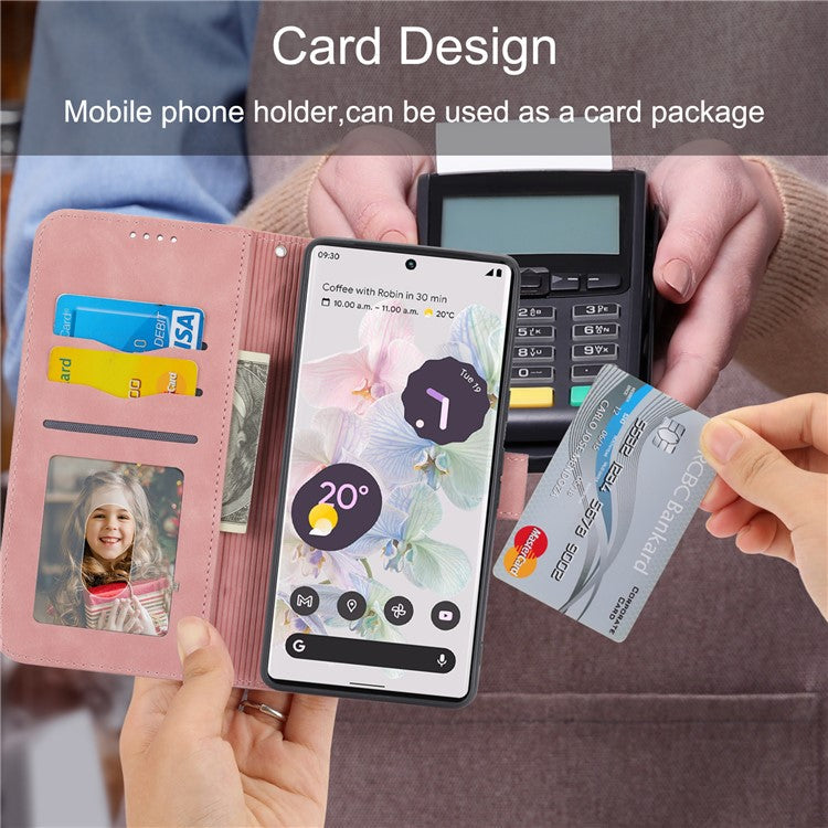 DIERFENG DF-03 Protective Phone Case for Google Pixel 6 Pro 5G, Anti-fall Flip Wallet Cover Stand with Lines Imprinting - Pink
