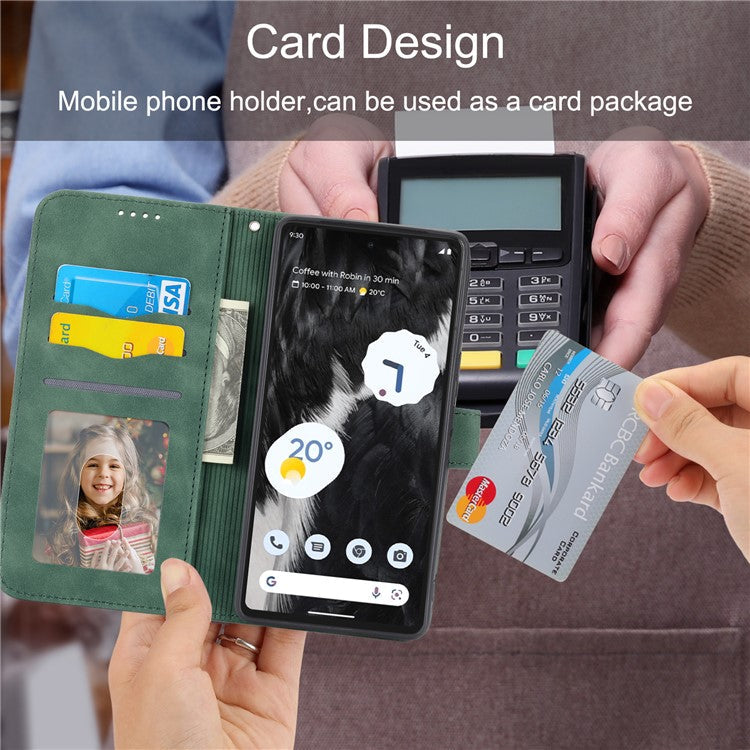 DIERFENG for Google Pixel 7 5G Shockproof Phone Case DF-03 Flip Leather Cell Phone Cover Stand Wallet - Green