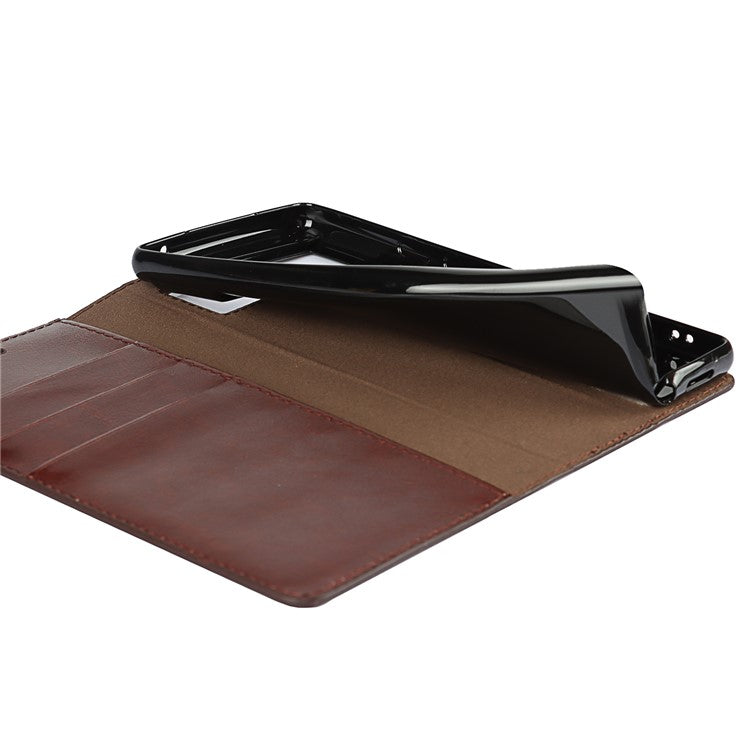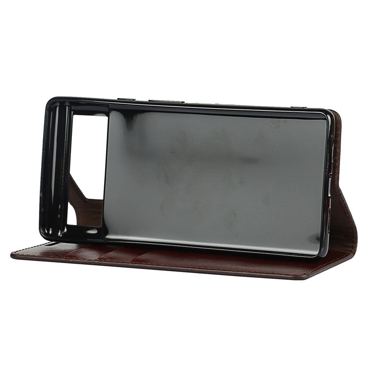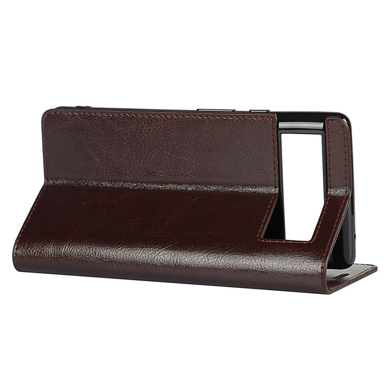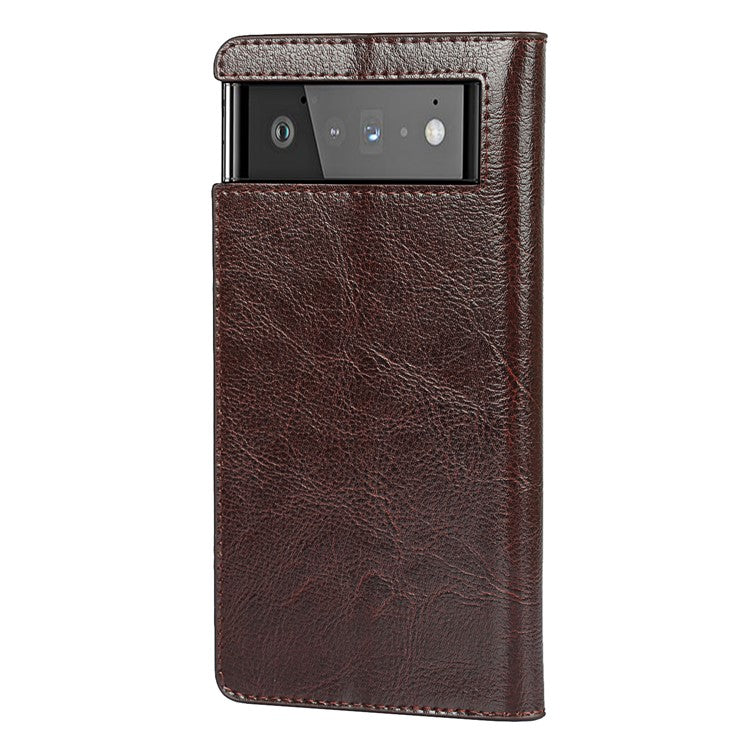 Drop-Proof Crazy Horse Genuine Leather Case with Wallet Stand Design for Google Pixel 6 - Dark Brown