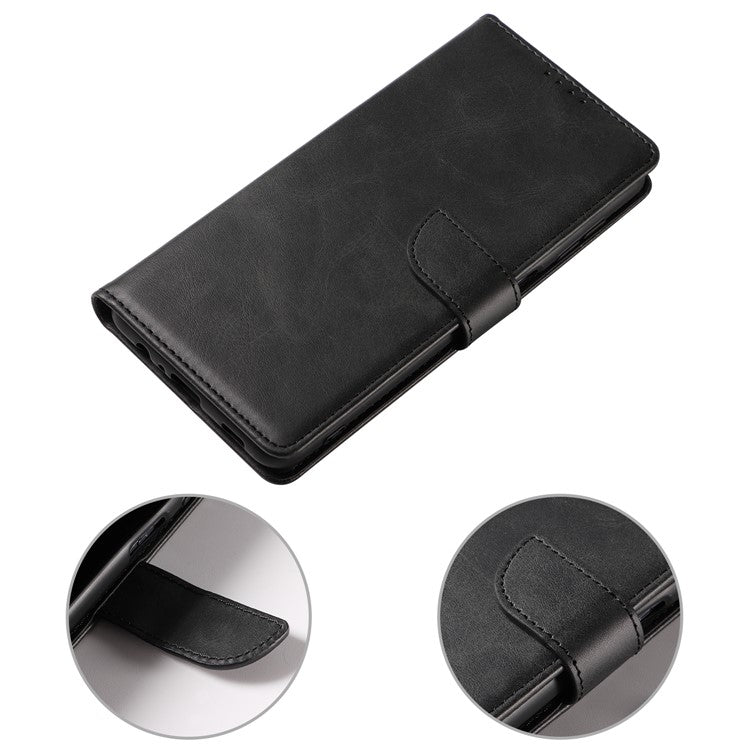 Folio Flip Magnetic Clasp Textured PU Leather + Soft TPU Phone Cover Case for Google Pixel 6 Pro - Black