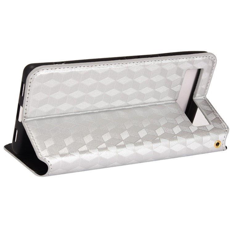 For Google Pixel 6a Imprinted Rhombus Leather Cover Wallet Stand Magnetic Auto Closing Phone Protector Case - Silver