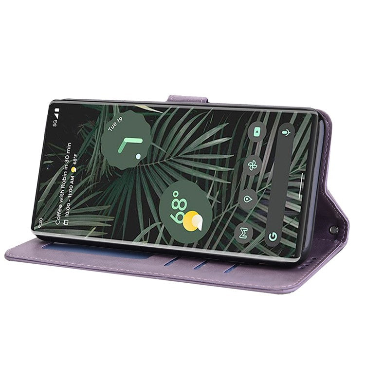For Google Pixel 7 Pro 5G Well-protected Phone Case Imprinted Deer Tree Pattern Wallet PU Leather Magnetic Closure Anti-fall Stand Cover - Purple