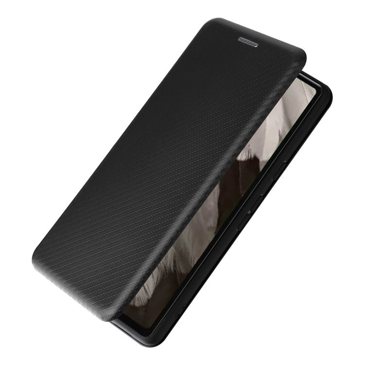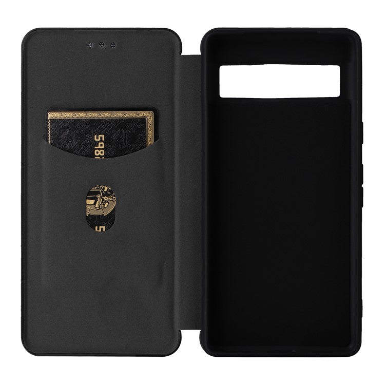 For Google Pixel 7a Carbon Fiber Texture Phone Case Card Slot PU Leather Magnetic Auto-absorbed Stand Cover - Black