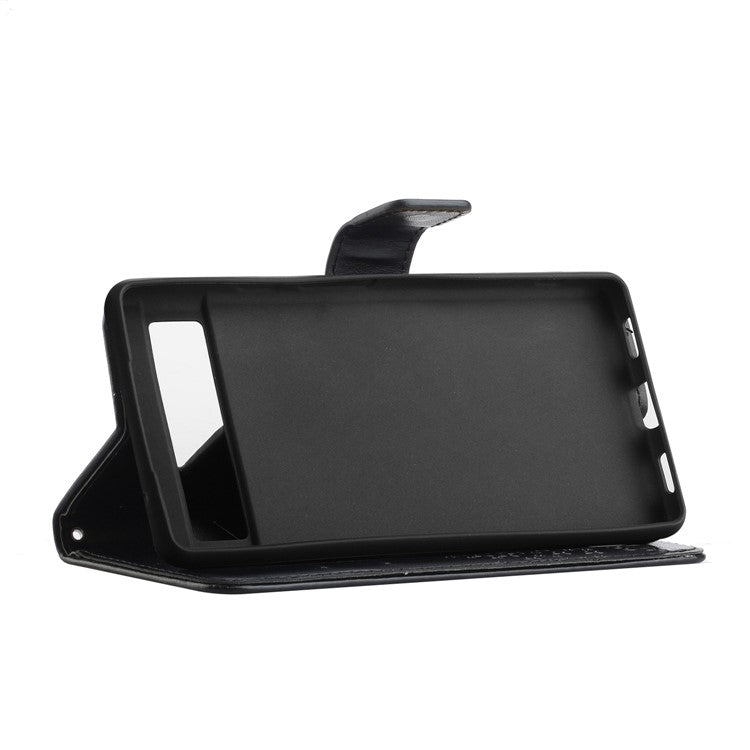 For Google Pixel 7a Imprinted Owl Tree Pattern PU Leather Stand Case Drop-proof Phone Wallet Cover - Black