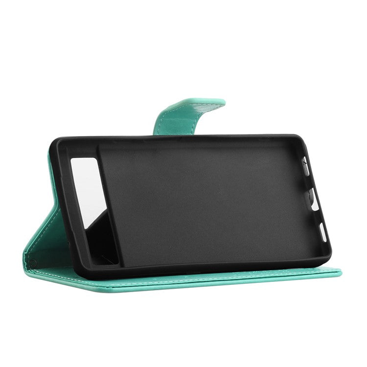For Google Pixel 7a Imprinted Owl Tree Pattern PU Leather Stand Case Drop-proof Phone Wallet Cover - Green