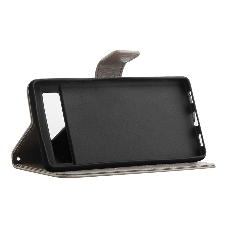For Google Pixel 7a Imprinted Owl Tree Pattern PU Leather Stand Case Drop-proof Phone Wallet Cover - Grey