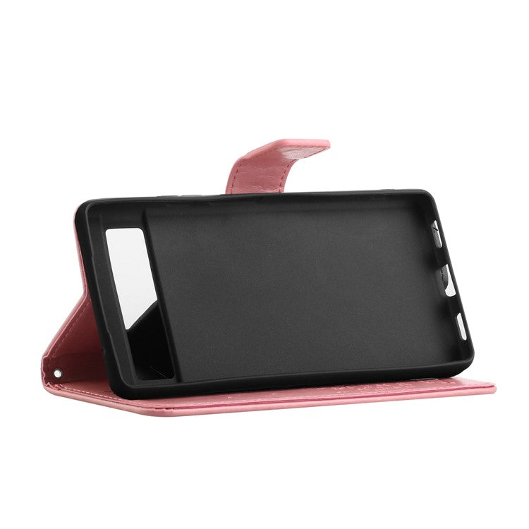 For Google Pixel 7a Imprinted Owl Tree Pattern PU Leather Stand Case Drop-proof Phone Wallet Cover - Pink