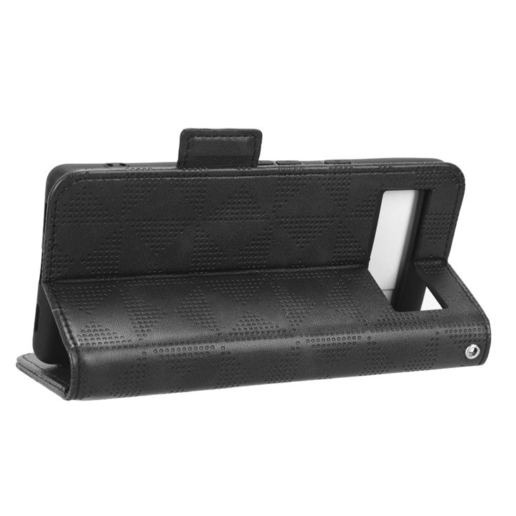 For Google Pixel 7a Imprinted Triangle Pattern Phone Cover Stand Wallet PU Leather Magnetic Clasp Case - Black