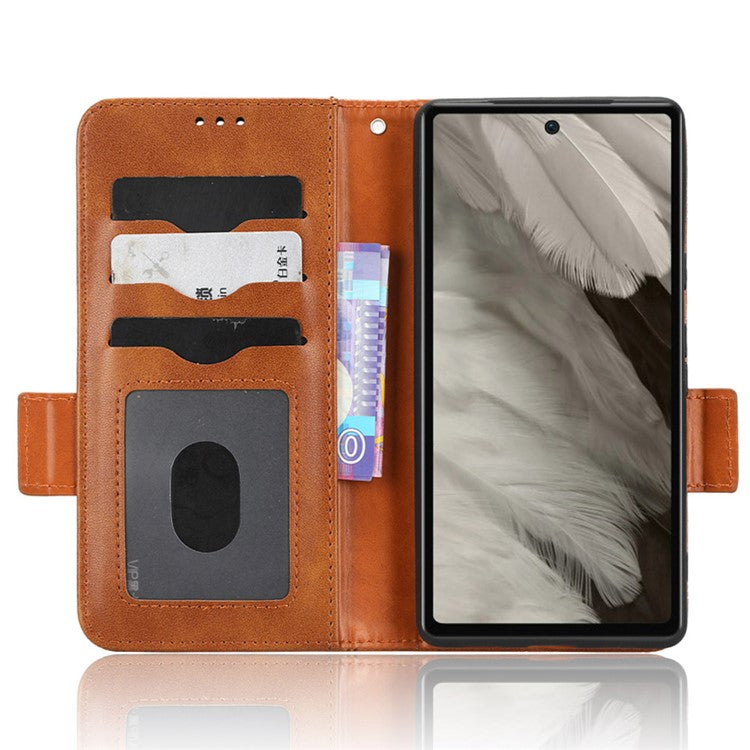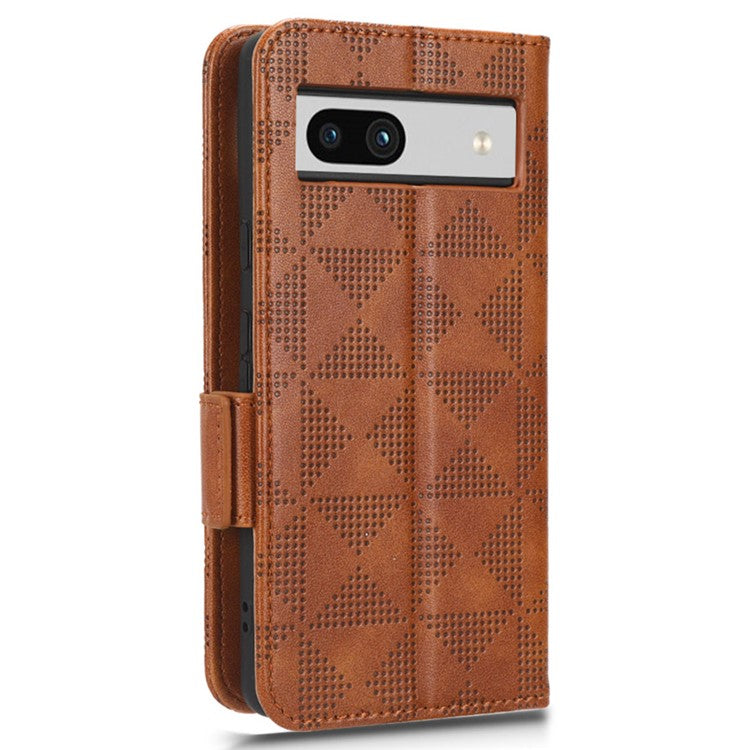 For Google Pixel 7a Imprinted Triangle Pattern Phone Cover Stand Wallet PU Leather Magnetic Clasp Case - Brown