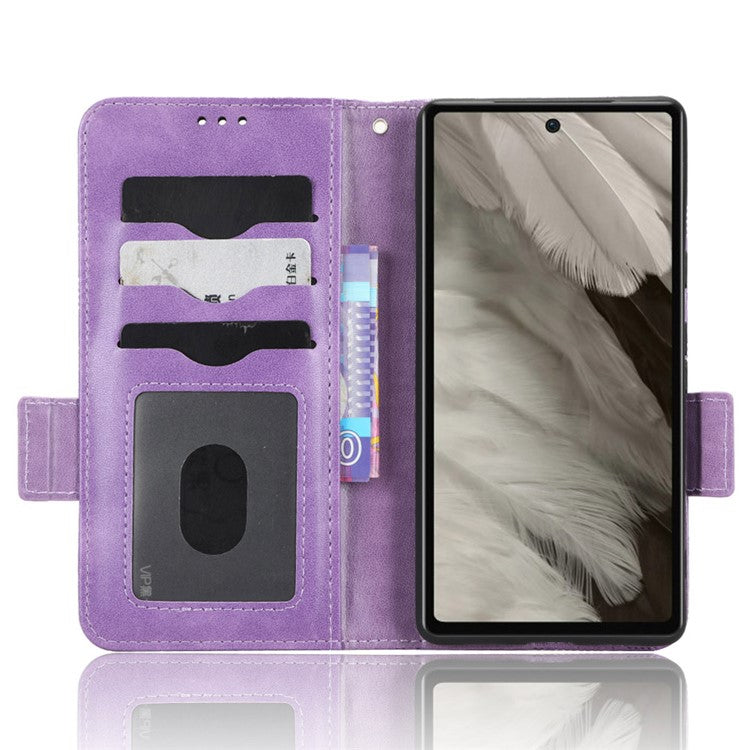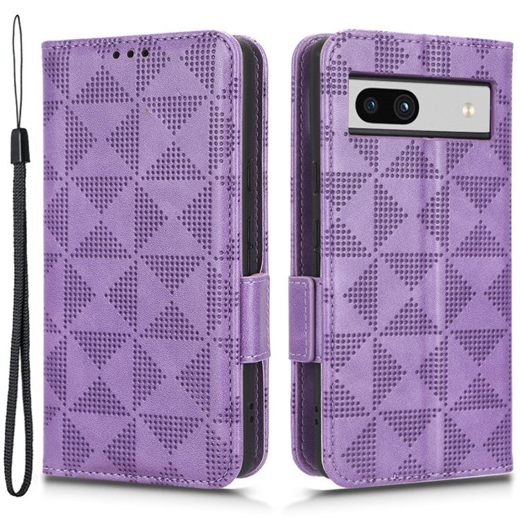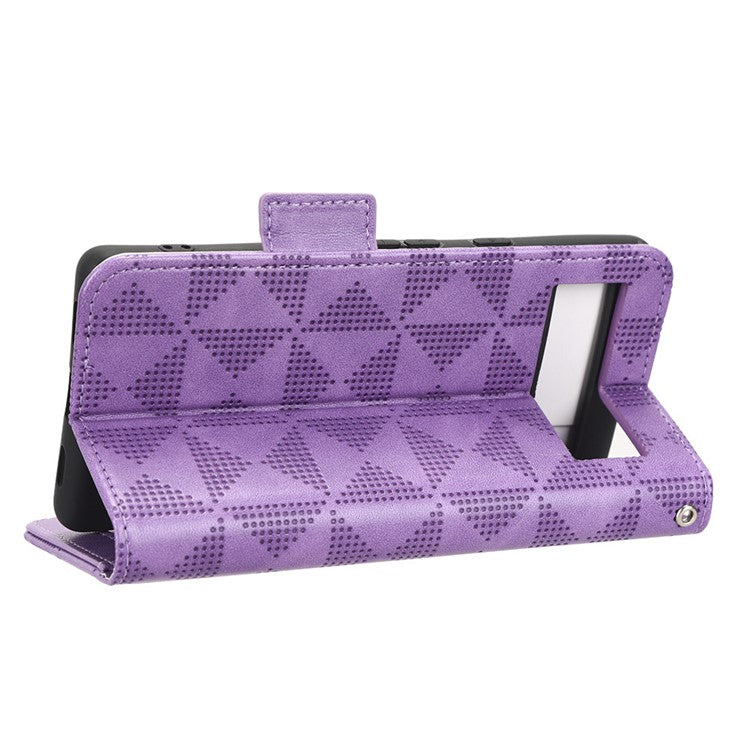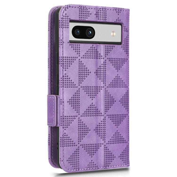 For Google Pixel 7a Imprinted Triangle Pattern Phone Cover Stand Wallet PU Leather Magnetic Clasp Case - Purple