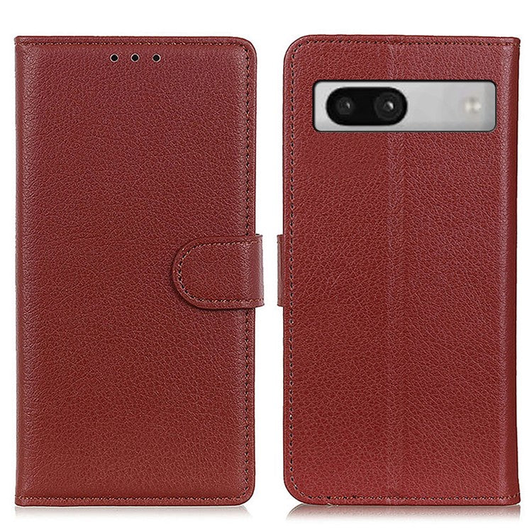 For Google Pixel 7a Litchi Texture Phone Cover Wallet PU Leather Phone Stand Case - Brown