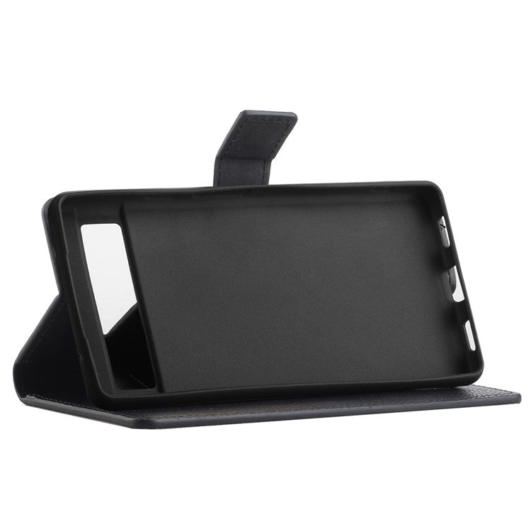 For Google Pixel 7a Litchi Texture PU Leather Wallet Case Stand Function Magnetic Square Clasp Cell Phone Cover - Black