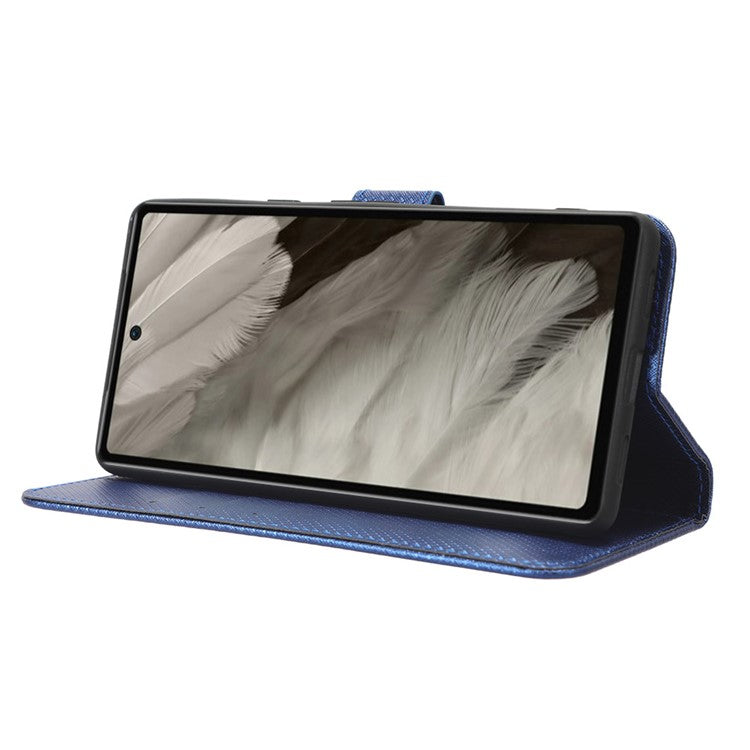 For Google Pixel 7a Mobile Phone Shell Wallet Stand Phone Case Diamond Texture PU Leather Phone Cover - Blue