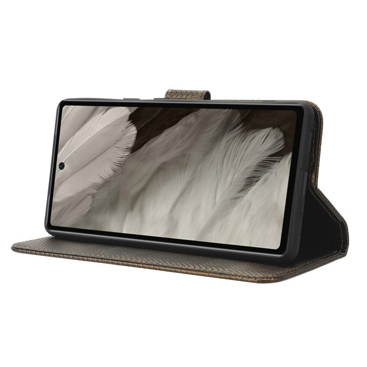 For Google Pixel 7a Mobile Phone Shell Wallet Stand Phone Case Diamond Texture PU Leather Phone Cover - Brown