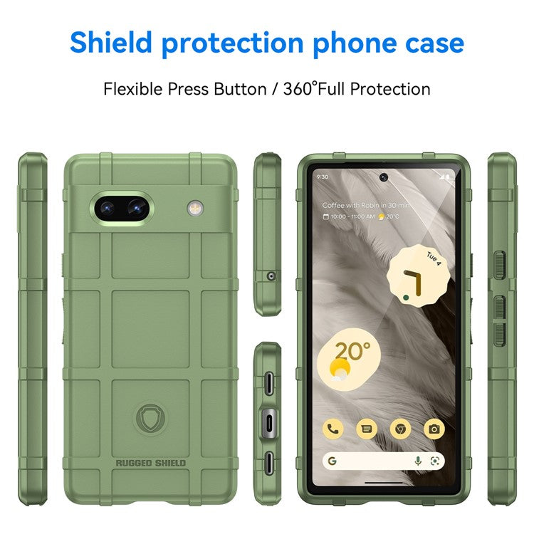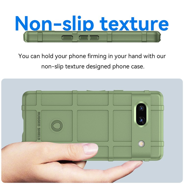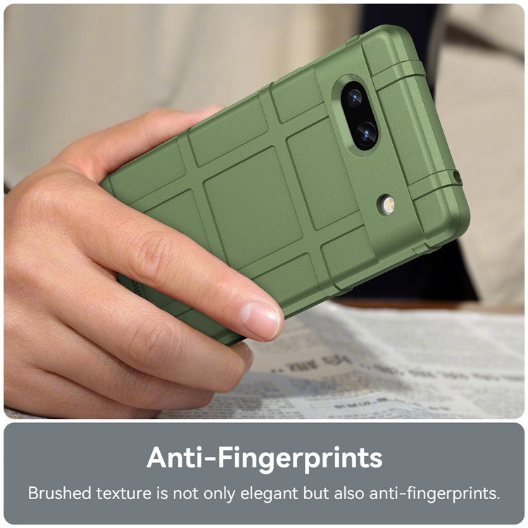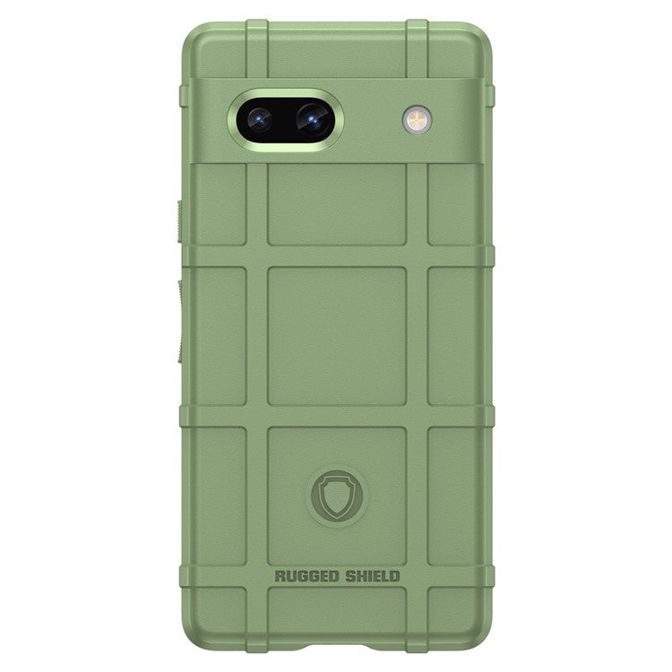For Google Pixel 7a Phone Case Rugged Square Grid Texture Drop Protection Soft TPU Back Cover - Green