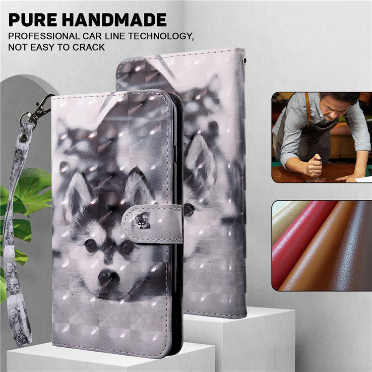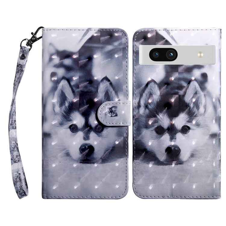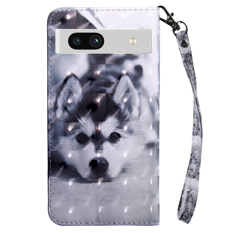 For Google Pixel 7a PU Leather Stand Wallet Shockproof Cover 3D Pattern Printing Phone Case - Husky