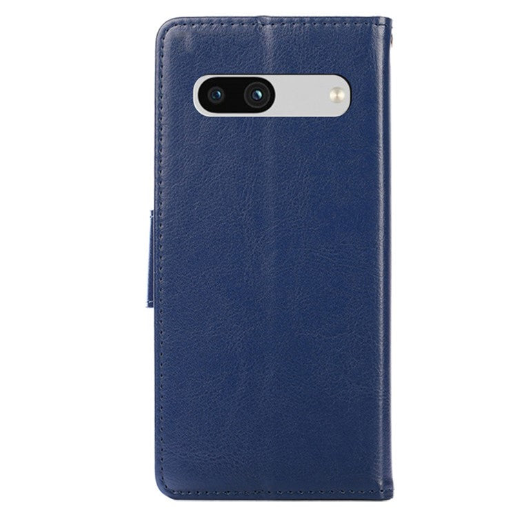 For Google Pixel 7a Textured PU Leather Phone Cover Anti-fall Folio Flip Wallet Case Foldable Stand Phone Shell - Sapphire