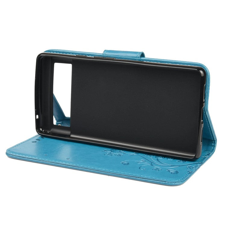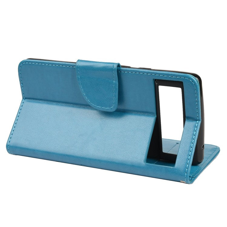 Full Protection Imprint Butterflies Flower Pattern Leather Phone Stand Wallet Case Cover for Google Pixel 6 - Blue