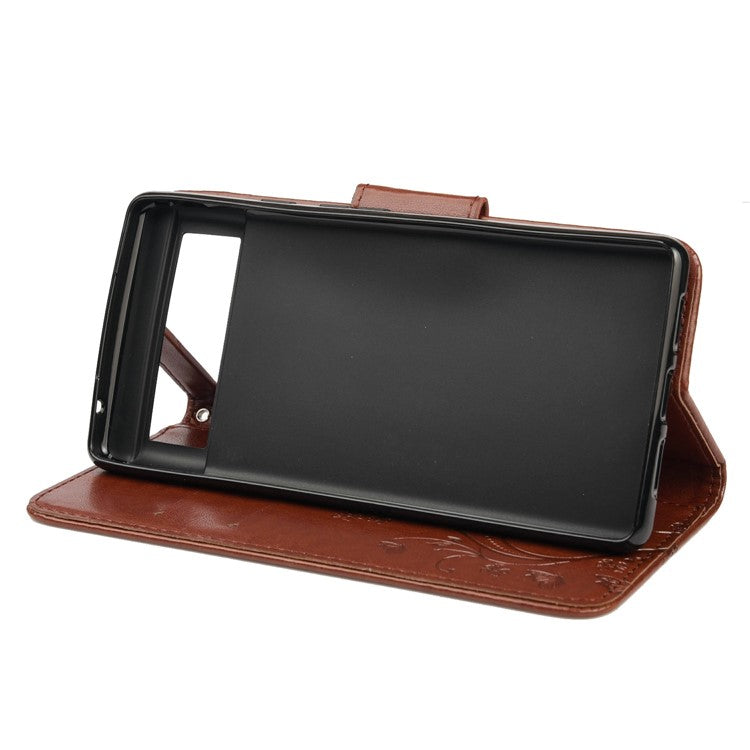 Full Protection Imprint Butterflies Flower Pattern Leather Phone Stand Wallet Case Cover for Google Pixel 6 - Brown