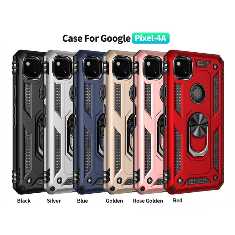 Hybrid PC TPU Shell for Google Pixel 4a Kickstand Armor Cover - Black