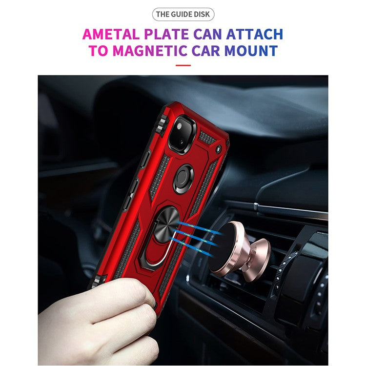 Hybrid PC TPU Shell for Google Pixel 4a Kickstand Armor Cover - Red