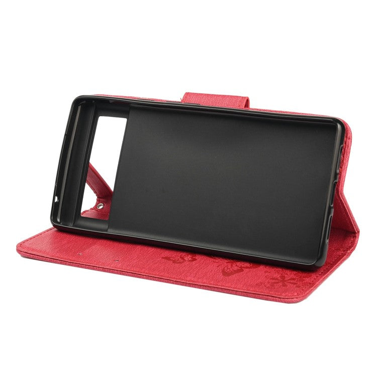 Imprinted Butterflies Flower Shockproof Leather Phone Case Shell with Wallet Stand for Google Pixel 6 - Red