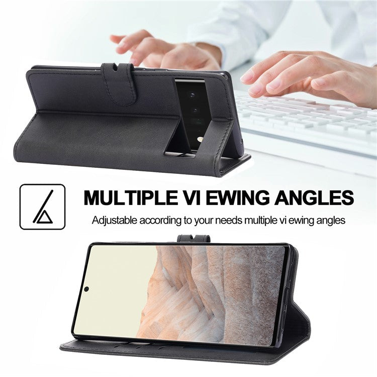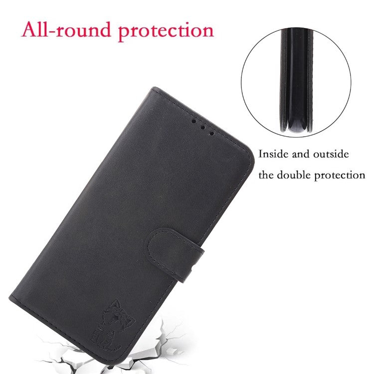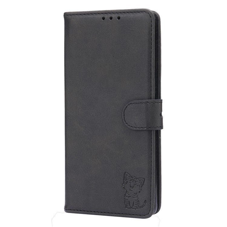 Imprinting Happy Cat Pattern PU Leather Wallet Case Phone Cover for Google Pixel 6 Pro - Black