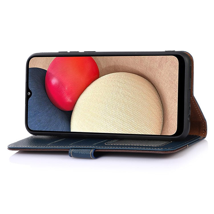 KHAZNEH For Google Pixel 7 Pro 5G Anti-scratch Phone Shell Litchi Texture Wallet Cover RFID Blocking PU Leather Stand Case with Strap - Blue