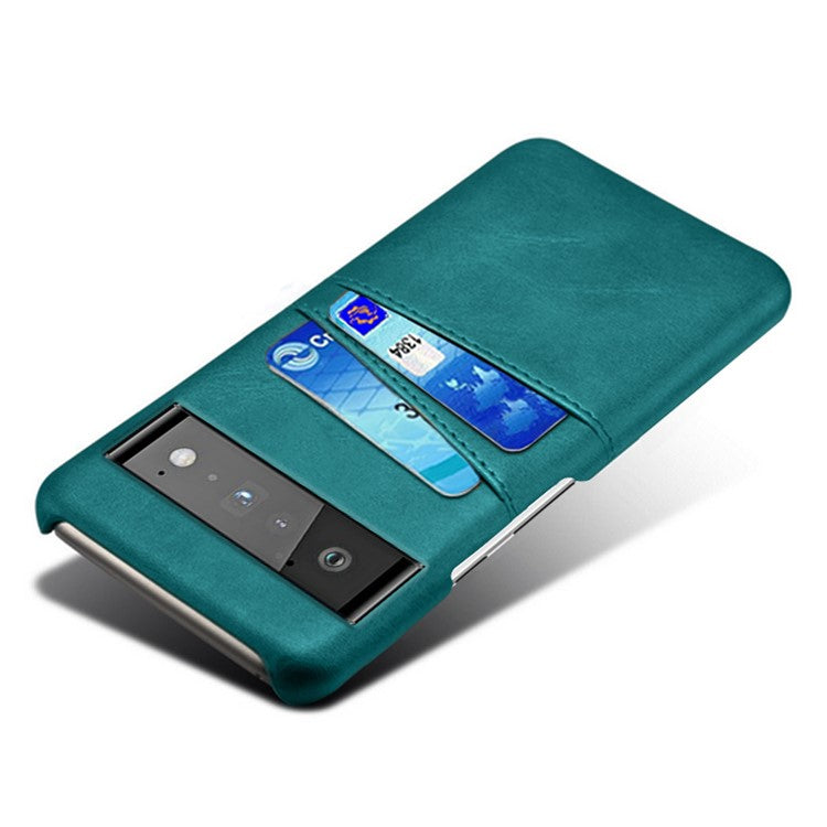 KSQ PU Leather + PC Combo Stylish Dual Back Card Slots Design Light Slim Hard Case for Google Pixel 6 Pro - Green